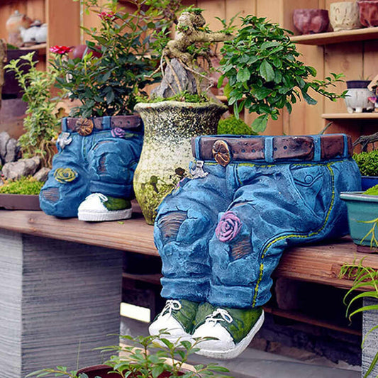 Jardino Denim | Skulpturaler Resin-Blumentopf im Jeans-Design für Sukkulenten