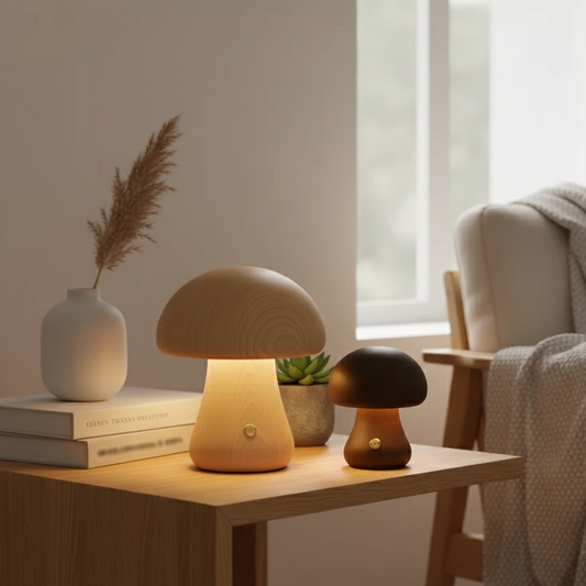 Lunaris Shroom | Wiederaufladbare Tischlampe im Holz-Pilz-Design