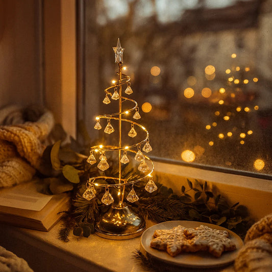 Weihnachtliche Lampe Gold | LED Weihnachtsbeleuchtung Warmweiß | Dekorative Tischlampe für festliche Stimmung
