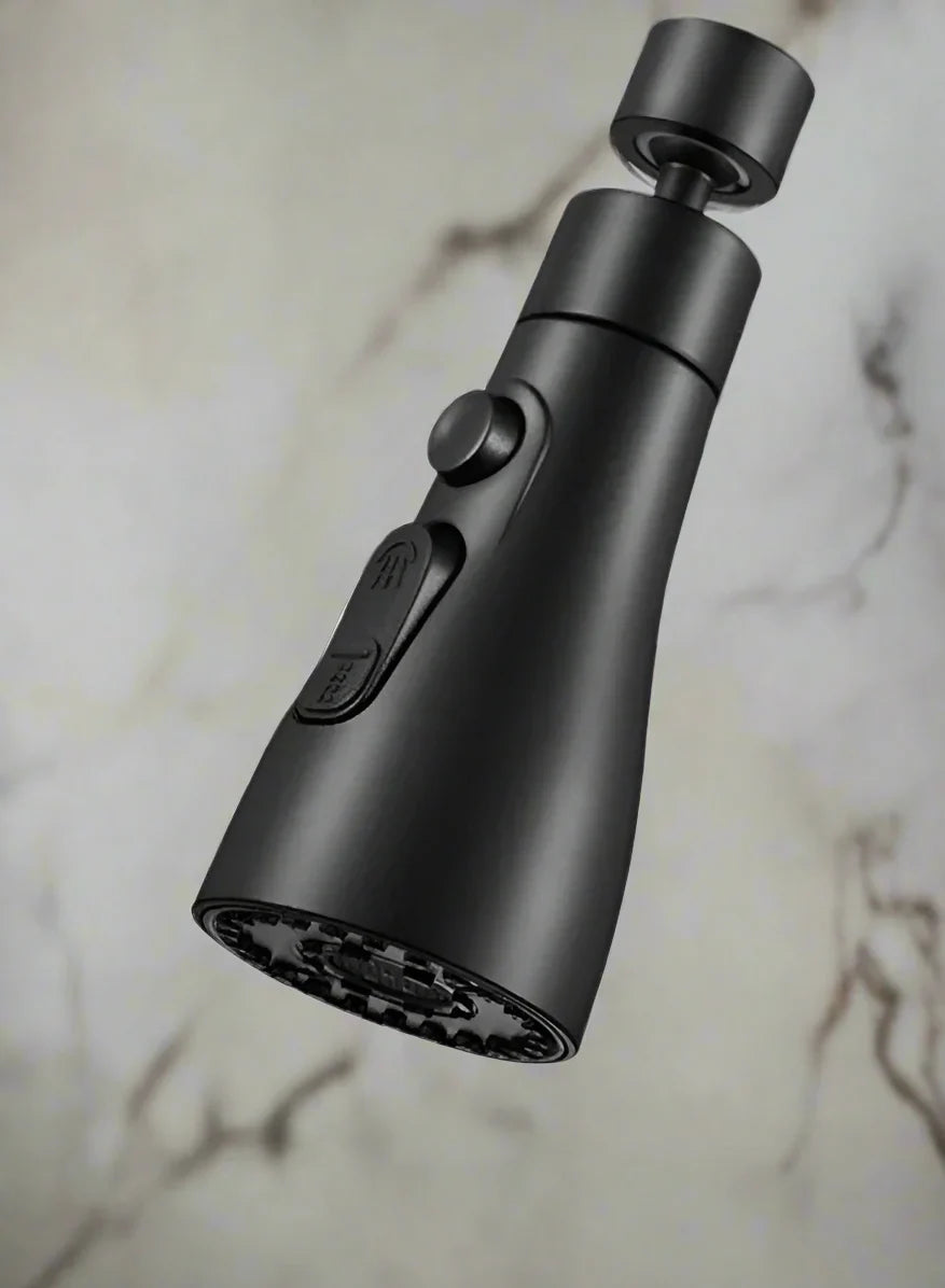 De Norvion Arc is een uittrekbare keukenkraan met een strakke, zwarte afwerking die design en efficiëntie perfect combineert. Dankzij de 360° draaibare kraan, drie waterstanden en geïntegreerde waterbesparende technologie worden afwassen en schoonmaken een moeiteloze ervaring – of het nu in de keuken of bijkeuken is.
