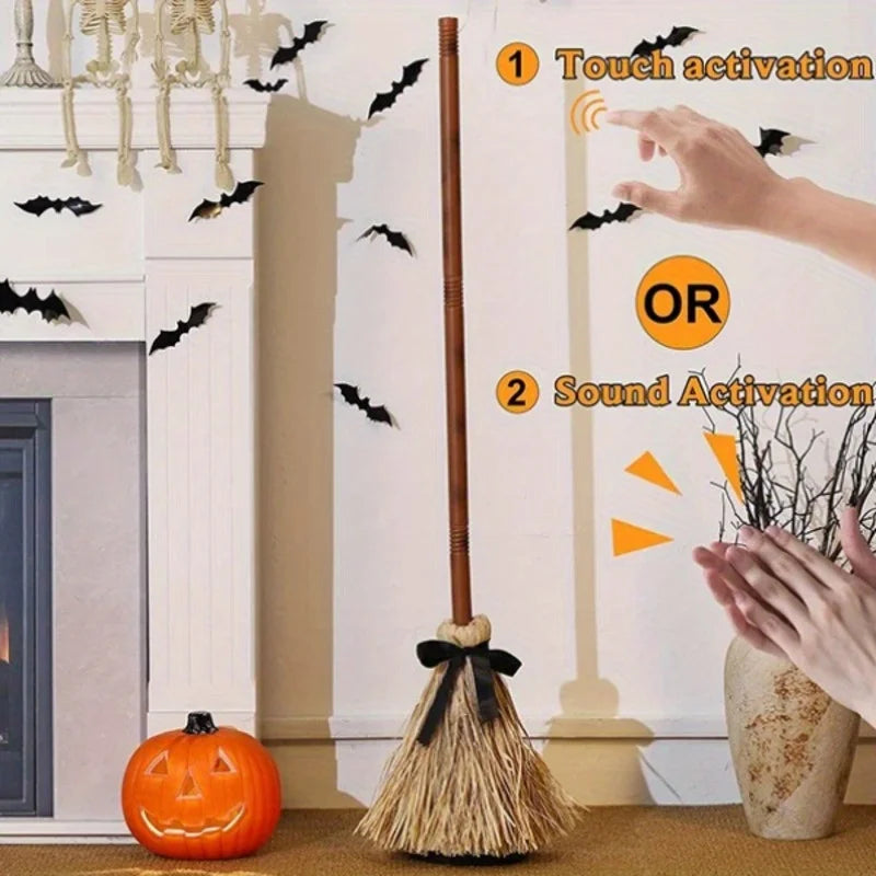 Halloween Hexenbesen | Schwebender Effekt mit Licht & Sound | Halloween Dekoration für Party & Garten
