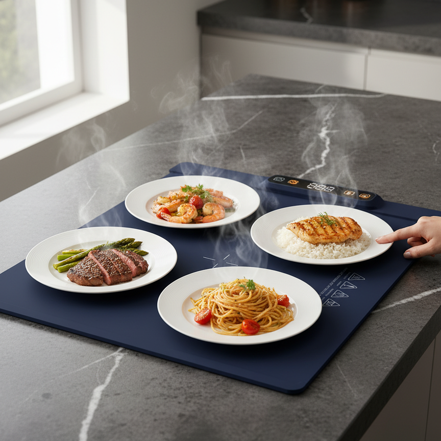 Die LuxTray HeatFlex Wärmeplatte ist Ihr vielseitiger Alltagshelfer für die Küche und mehr. Egal ob Sie Mahlzeiten warm halten, Teig gehen lassen, Kosmetikprodukte erwärmen oder Tiefkühlware schonend auftauen – diese flexible Heizmatte passt sich an Ihre Bedürfnisse an.